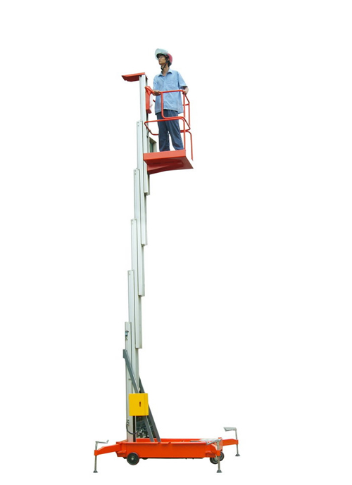 鋁合金液壓升降機且耗電少、無污染、工作時不傷地面,可用于貼墻工作及探出作業(yè),工作無死角。鋁合金液壓升降機廣泛適用于星級酒店,大型超市等各行業(yè)大廳、廠房內(nèi)的高空清潔和電線、照明安裝維護類高空作業(yè),鋁合金液壓升降機根據(jù)其自身升高度可分為:單桅柱式升降機(4-10米),雙桅柱式升降機(8-14米)跟多桅柱式升降機(12-22米)。