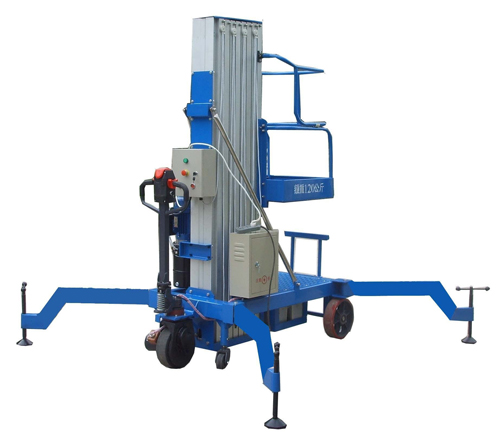 鋁合金液壓升降機整機重量輕,機動性好,適合單人操作;特制的桅柱間導輪裝置,升降平穩(wěn)自如;結構緊湊,運輸狀態(tài)尺寸小,可進入一般電梯的轎廂以及能順利通過門洞和狹小通道;雙重保護的支腿結構,工作更安全,且可貼近工作面升降作業(yè);根據使用場所高的要求,可做成手動放到或電動放到式升降平臺。以滿足門口比較低時使鋁合金升降平臺無法進入的情況。