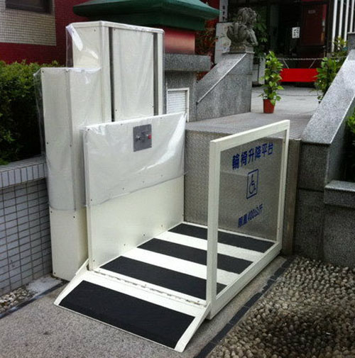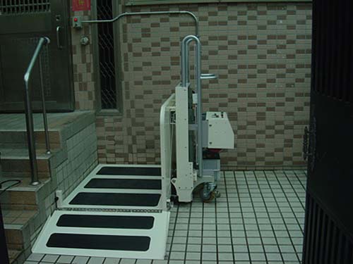 安全裝置安全翹板:設(shè)備運(yùn)行上升時(shí)翹板自動(dòng)翹起,防止輪椅滑出平臺(tái)。